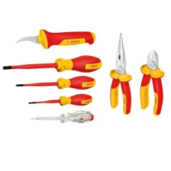 BOSCH ELEKTRİKÇİ EL ALETİ SETİ 7 Lİ 1600 A 02 NG 3 VDE Çapraz Yan Kesici 160 mm 1 600 A 02 ND 9 VDE Uzun Burunlu Pense düz 200 mm 1 600 A 02 NE 3 VDE Soyma Bıçağı 1 600 A 02 NF 6 Tek kutuplu Faz Test Cihazı SL 3 x 65 1 600 A 02 ND 8 VDE Tornavida SL 3.5 x 75 1 600 A 02 NC 1 VDE Tornavida SL 6.5 x 125 1 600 A 02 NC 4 VDE Tornavida PH 1 x 100 1 600 A 02 NB 8 VDE El Aletleri Seti karışık 7 parça Profesyonel: Daha fazla bilgi Tüm VDE aletleri 10.000 volta kadar test edilmiş ve DIN EN/IEC 60900'e göre 1.000 volta kadar VDE sertifikalıdır Tek kutuplu faz test cihazı DIN VDE 0680-6'ya göre sertifikalıdırÜrün Özellikleri Profesyonel bir zanaatkar olarak, kullanımı kolay ve tüm yasal gereklilikleri karşılayan aletlere ihtiyacınız vardır.Pratik Bosch Professional VDE karma el aletleri seti (7 parça), 2 VDE pense, 3 VDE tornavida, 1 VDE sıyırma bıçağı ve 1 tek kutuplu faz test cihazı içerir.Beklenmedik bir şekilde canlı parçalara temas etseniz bile, çivi gibi nesneleri kavrayabilir veya çekebilir, telleri kesebilir veya vidaları sabitleyip gevşetebilir veya telleri sökebilirsiniz.Tüm VDE el aletleri, krom vanadyum çeliği sayesinde oldukça dayanıklıdır.Tornavidaların ince S 2 şaftları ve sağlam uçları, doğru bir şekilde oturmasını sağlar.Pense ile, yüksek kaldıraçlı tasarım ve keskinleştirilmiş kesme kenarları sayesinde standart pense ile karşılaştırıldığında malzemeyi kesmek için %30'a kadar daha az efor sarf etmeniz gerekir.Ve sıyırma bıçağı, yumuşak kavrama, başparmak desteği ve parmak kancası ile ergonomik konfor sayesinde çalışırken size optimum kontrol sağlar.VDE tornavidalar ve VDE sıyırma bıçağı Termoplastik Elastomer (TPE) ile yalıtılmıştır, VDE pense Termoplastik Poliüretanlar (TPU) ile yalıtılmıştır.Bu setteki tüm VDE el aletleri 10.000 volta kadar test edilmiş ve DIN EN/IEC 60900'e göre 1.000 volta kadar VDE sertifikalıdır.Bosch Professional tek kutuplu faz test cihazı DIN VDE 0680-6'ya göre sertifikalıdır.Mevcut bir akım olup olmadığını belirlemenizi sağlar. AC 100 V - 250 V arasındaki voltajları algılar ve akım varsa sizi uyaran entegre bir kızdırma lambası vardır.Bosch Professional serimize eklenen VDE el aletleriyle, tüm alet gereksinimlerinizi güvenilir Bosch kalitesinde elde edersiniz.