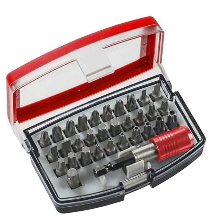 Kwb 118490 Bits Ucu Seti 32 Parça Bits Uç1 takım olarak gönderilir.Özellikler:Bit kutusu, 32 adet, Krom vanadyum çeliği, yüksek kaliteli plastik hazneli, kullanışlı klipsli, 30 bit, 1/4 ', 25 mm, 1 hızlı değiştirilebilir ataşman, 1 kutu somun adaptörüSağlam plastik kutuda, pratik kemer klipsli, kapsamlı geçme lokma adaptörlü set. Piyasadaki tüm uygulamalar için uygundur.ISO 1173 E 6.3'e göre 1/4 inç altıgen uç tutucu ve ISO 1173 ve C 6.3 forma göre 1/4 inç dış altıgen uçlar.Tornavida seti Bosch, Milwaukee, De Walt, Metabo, Makita vb. gibi markalara ait tüm standart akülü tornavidalar için uygundur. kullanılabilir.İçerdiği tüm aletler kaliteli krom vanadyum çeliğinden oluşmaktadır. (Ürün numarası: 118490).
