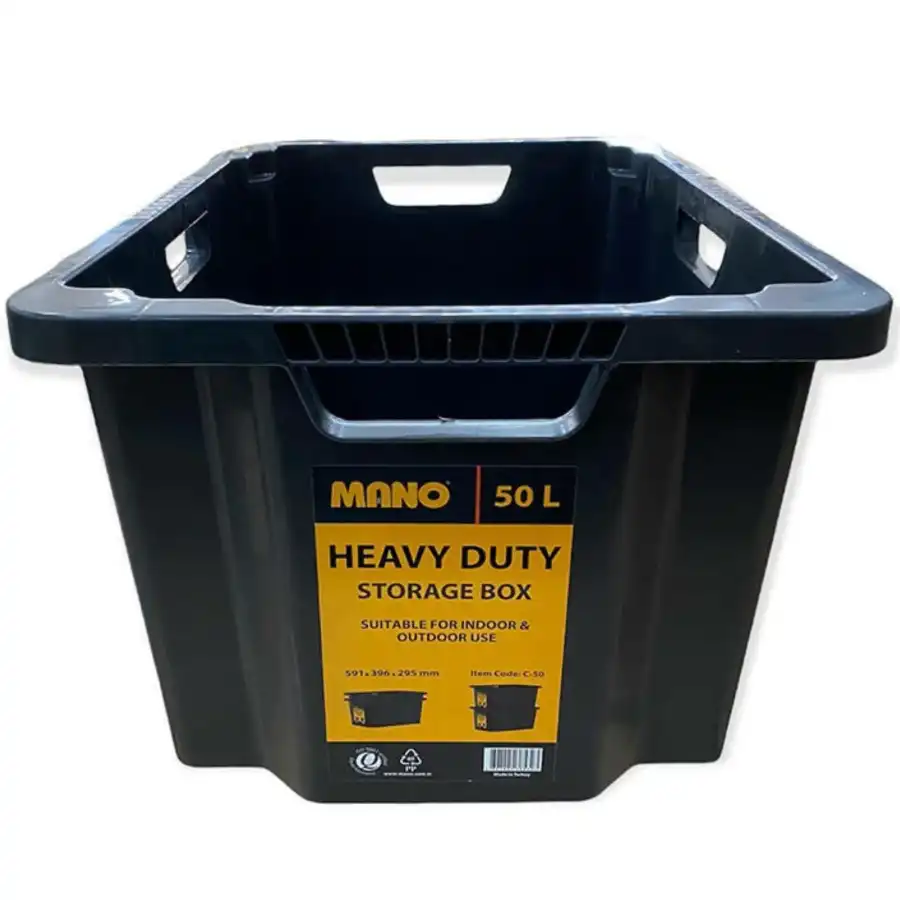 Mano'nun 50 litrelik siyah kutusu çok dayanıklıdır ve geri dönüştürülmüş plastikten yapılmıştır.